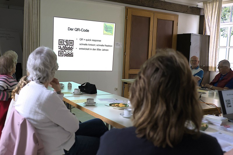 Lächelnde Gesichter, bunte Stühle und viele Aha-Momente: Das Handy-Café zum Thema „QR-Code verstehen, scannen und anwenden“ war ein voller Erfolg! Mehr als zehn neugierige Seniorinnen und Senioren nahmen an der fröhlichen Runde teil, um mehr über die kleinen, quadratischen Codes zu erfahren – und vor allem: sie gleich praktisch auszuprobieren. Man findet QR-Codes heute überall, auf Visitenkarten, an Parkautomaten, auf Werbeflächen oder auch in Briefen und obwohl sie so klein sind, können sie eine enorme Datenmenge beinhalten.