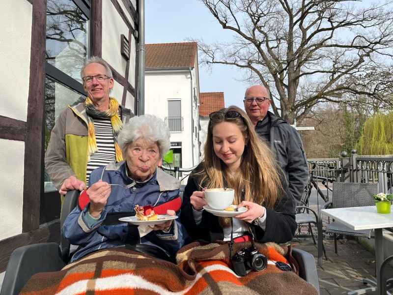 Andreas Bergmann, Mitglied des Seniorenrats Burgdorf, erfuhr von dem Wunsch am Wünschebaum des Helenenhofs und setzte sich dafür ein, dass dieser erfüllt wird. In Zusammenarbeit mit der Diakonie Hannover-Land konnte eine besondere Fahrt organisiert werden. Die Seniorin und ihre Begleiterin wurden von Axel Berndt und Andreas Bergmann am Helenenhof abgeholt und mit der Rikscha zum Schwanenteich gefahren. Bei schönstem Frühlingswetter ging es durch den Stadtpark bis ins nächste Café, wo sich alle mit einen Stückchen Kuchen stärkten, bevor es wieder zurück zum Helenenhof ging. Die glückliche Seniorin hofft bald nocheinmal mit der Rikscha Orte in Burgdorf besuchen zu können, die sie frühen mit dem eigenen Fahrrad erreicht hat.